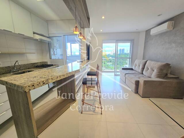 Belíssima vista para o Residencial Alpha 1 com: 1 dormitório, sala de estar, de jantar, banheiro, cozinha, área de serviço, 2 vagas. Ar-condicionado no quarto e sala.